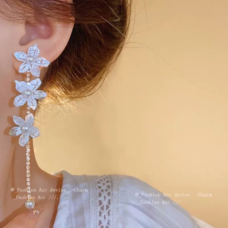 Bông Tai 3 Bông Trắng