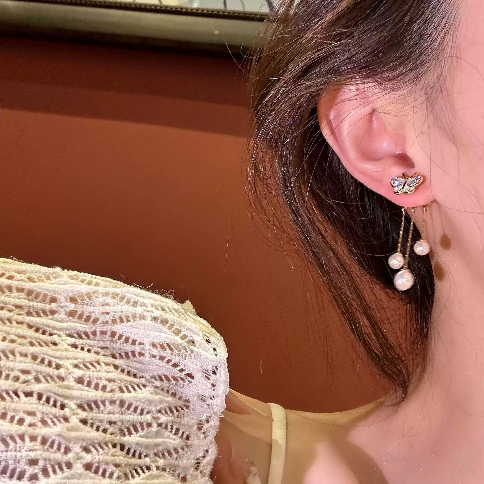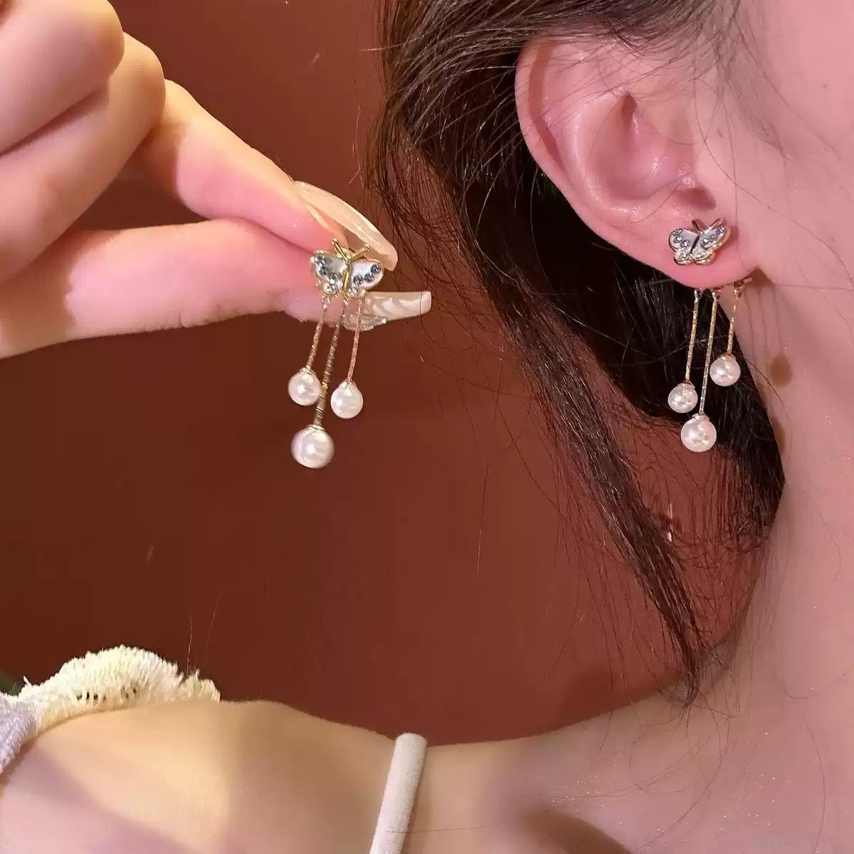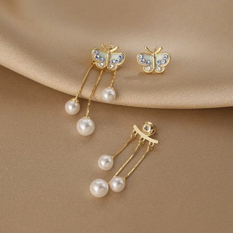 Bông Tai Bướm Xanh 3 Dây Châu