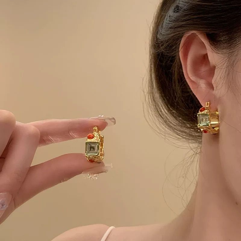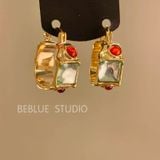 Bông Tai Tròn Đá Màu