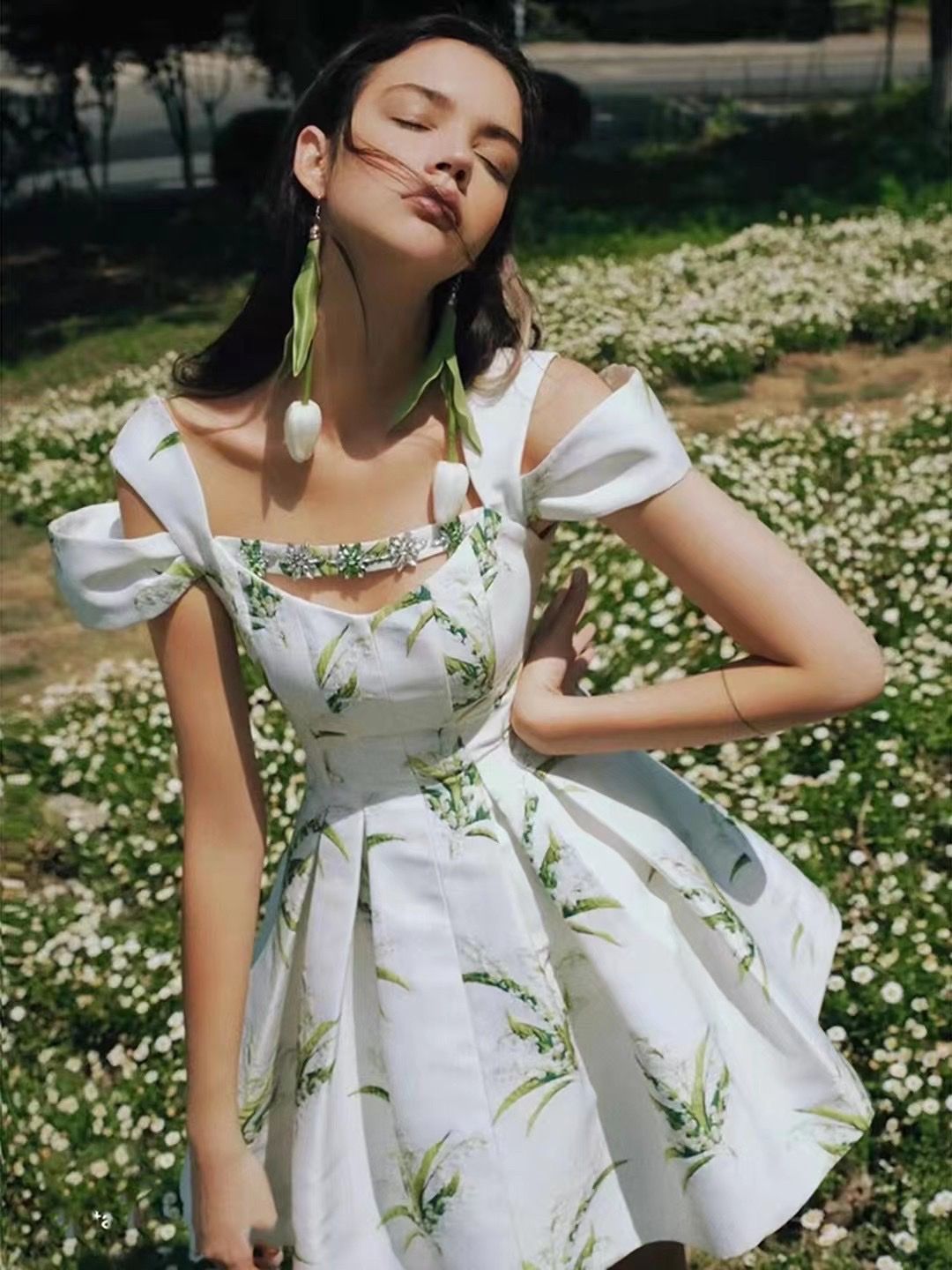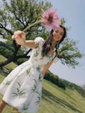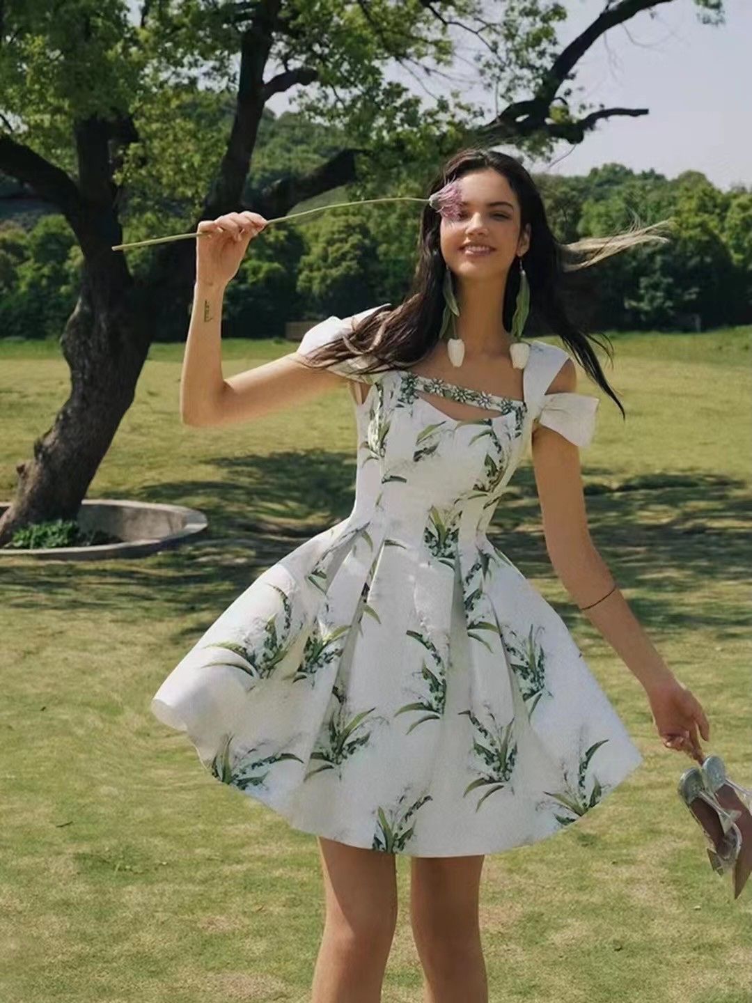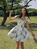 Đầm Lá xanh Cổ Đá – LULITA SHOP