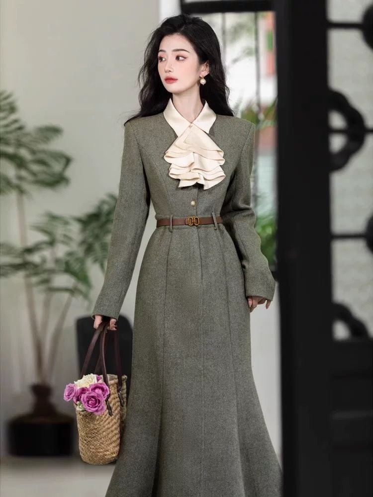 Đầm Tiểu Thư Bèo Cổ Dây Nịt – LULITA SHOP