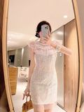 Đầm Trắng Kim Sa Lưới Cườm