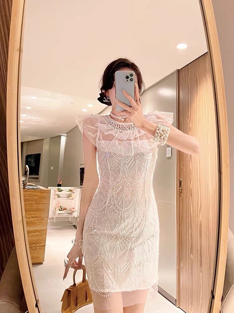 Đầm Trắng Kim Sa Lưới Cườm – LULITA SHOP
