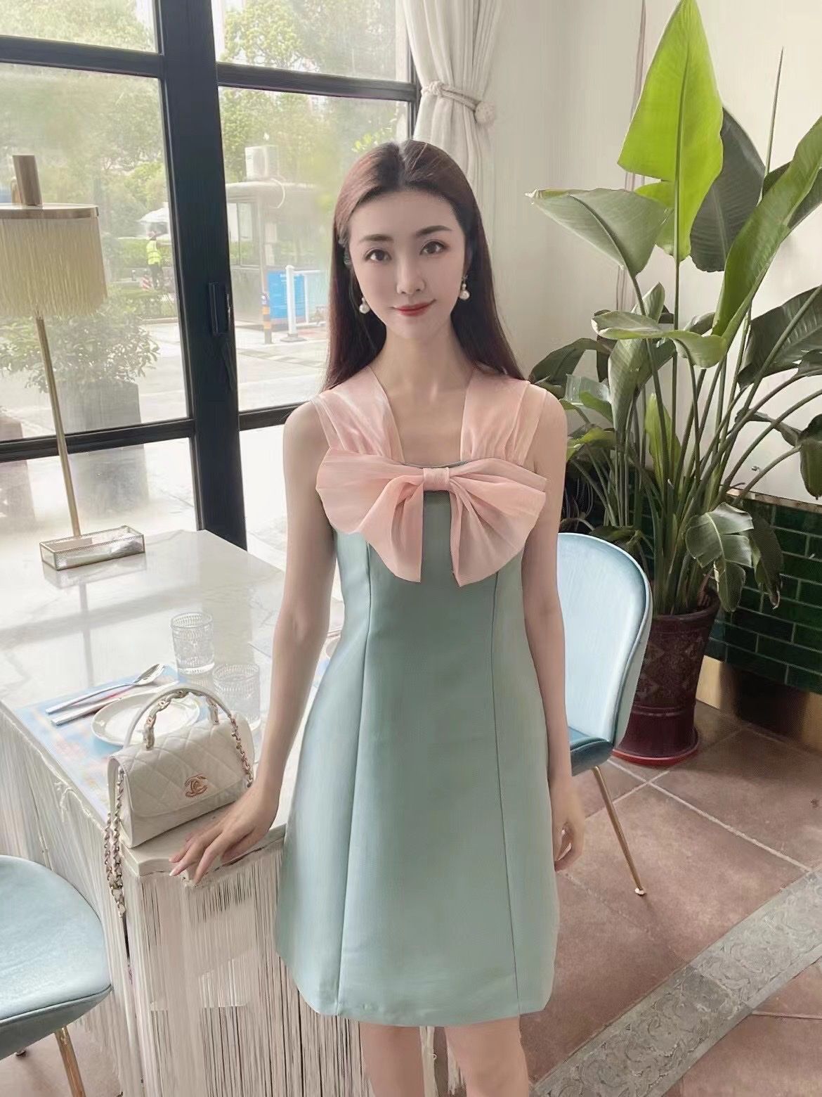 Đầm Xanh Ngắn Nơ Hồng – LULITA SHOP
