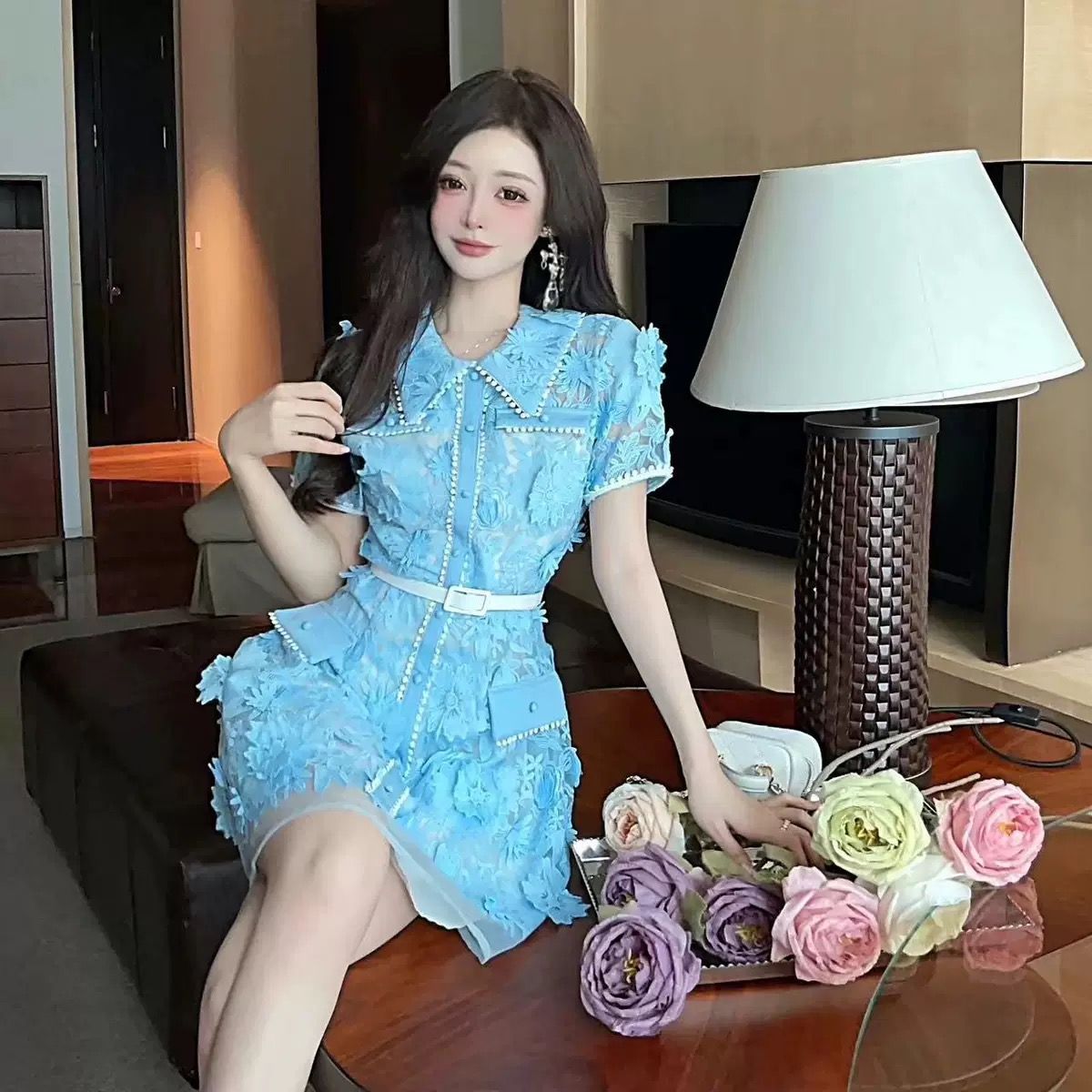 Đầm Xanh Nịt Trắng Kết Hoa – LULITA SHOP