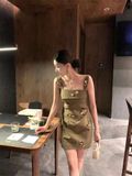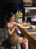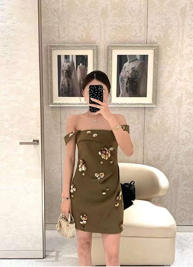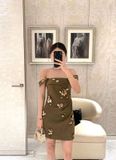 Đầm Xanh Rêu Đính Hoa Vàng