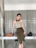 Set Áo Sọc Chân Váy Rêu