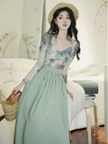 Set Áo Thun Xanh Mịn Chân Váy Xếp Li