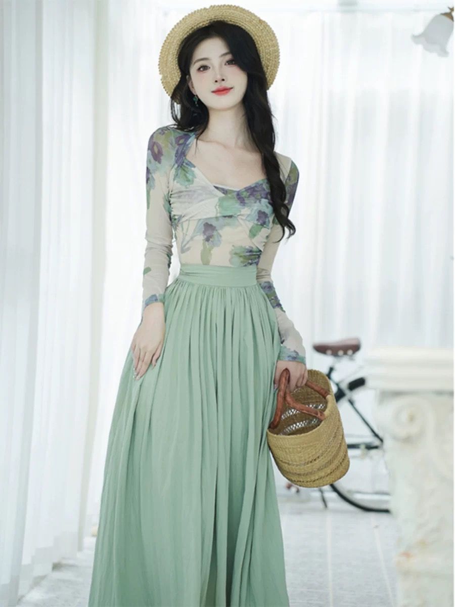 Set Áo Thun Xanh Mịn Chân Váy Xếp Li – LULITA SHOP